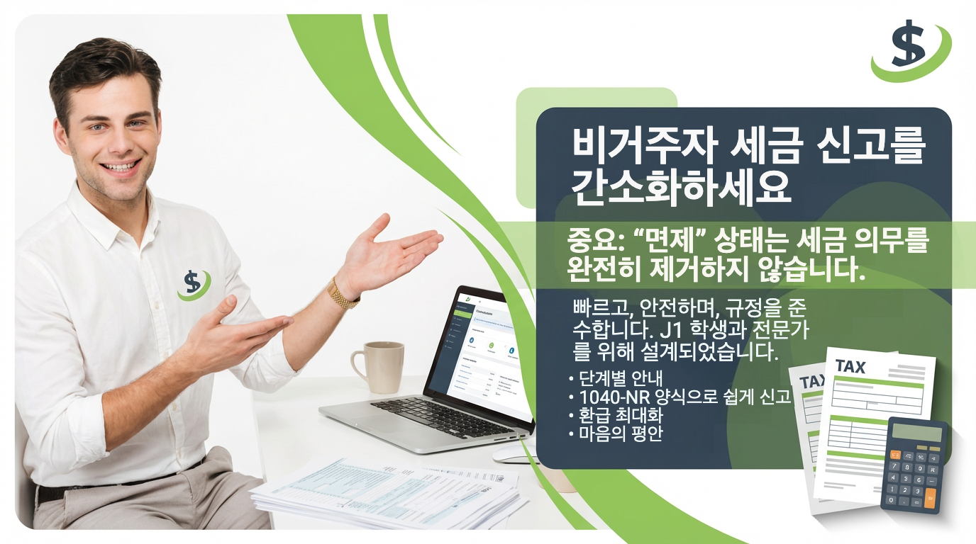 “면제(exempt)”는 세금 신고 의무가 면제된다는 뜻이 아닙니다. 이는 J1 Summer Tax Back이 매우 자주 바로잡는 대표적인 오해입니다. 이 용어는 단지 실질적 체류 테스트에서 날짜 계산이 면제된다는 의미일 뿐입니다.