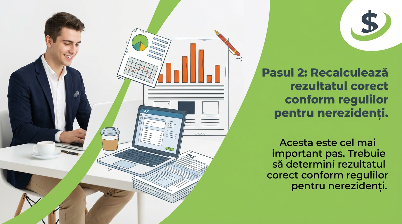 Pasul 2: Recalculează rezultatul corect conform regulilor pentru nerezidenți