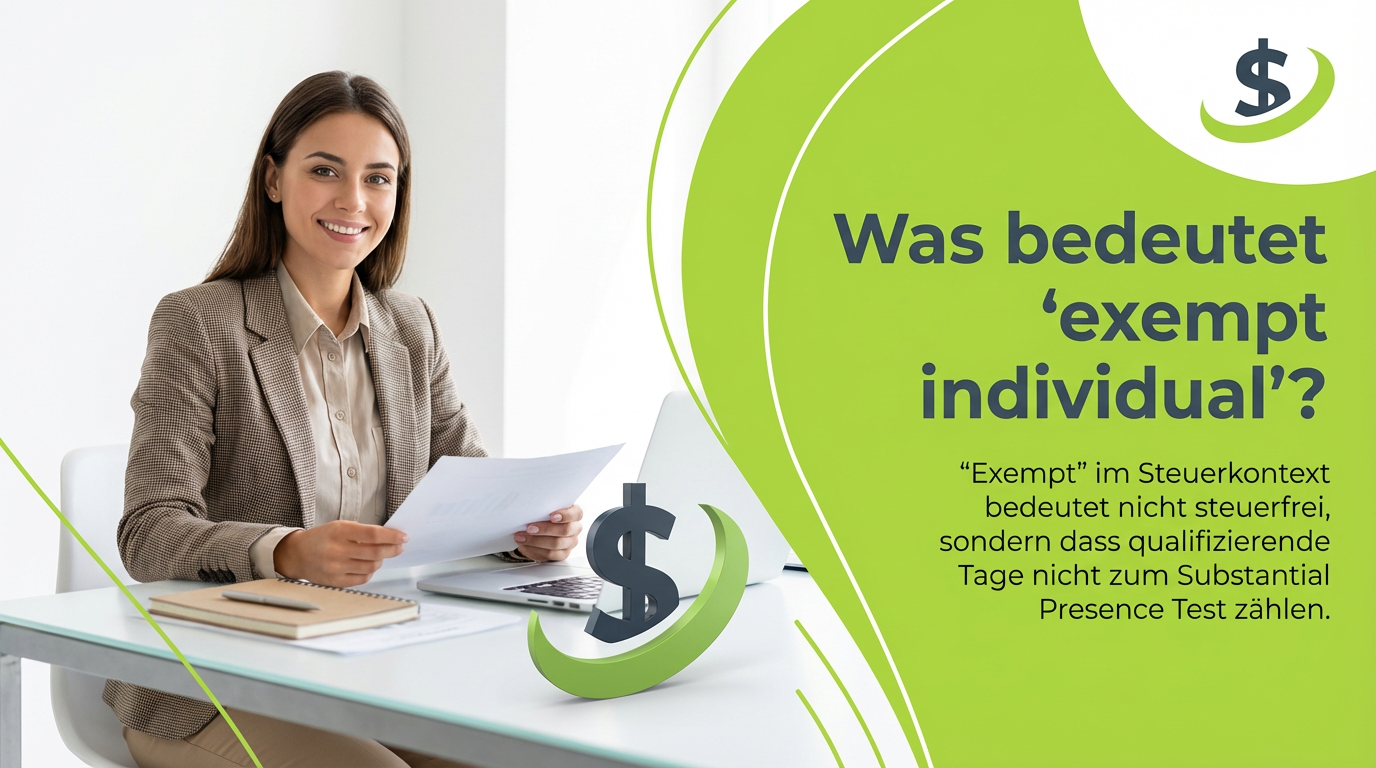 Im Steuerkontext bedeutet „exempt“ nicht steuerfrei. Es bedeutet, dass Ihre Aufenthaltstage nicht für den Substantial Presence Test zählen.