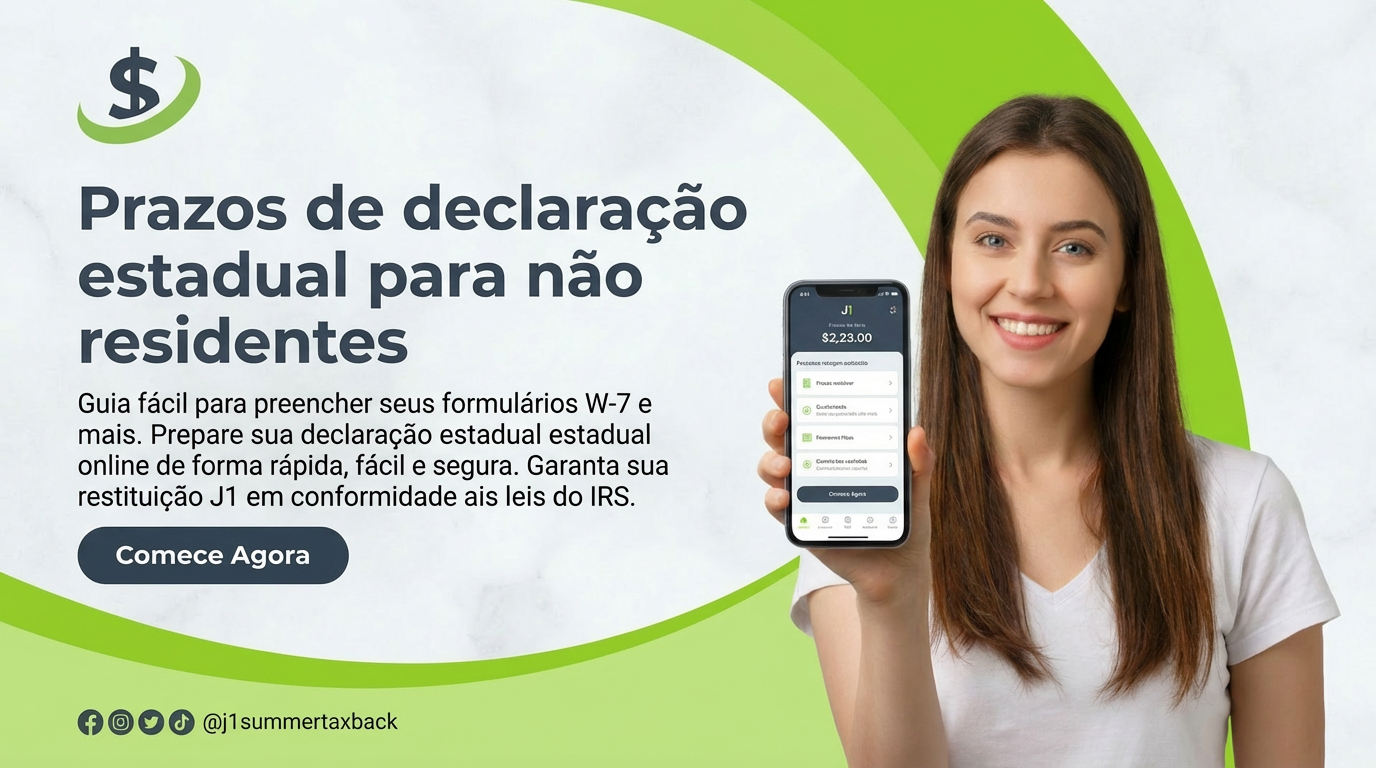 Este guia explica quando não residentes precisam declarar impostos estaduais, quais documentos são necessários e como a J1 Summer Tax Back ajuda você a lidar com a declaração estadual (state-only) de forma correta e sem estresse.