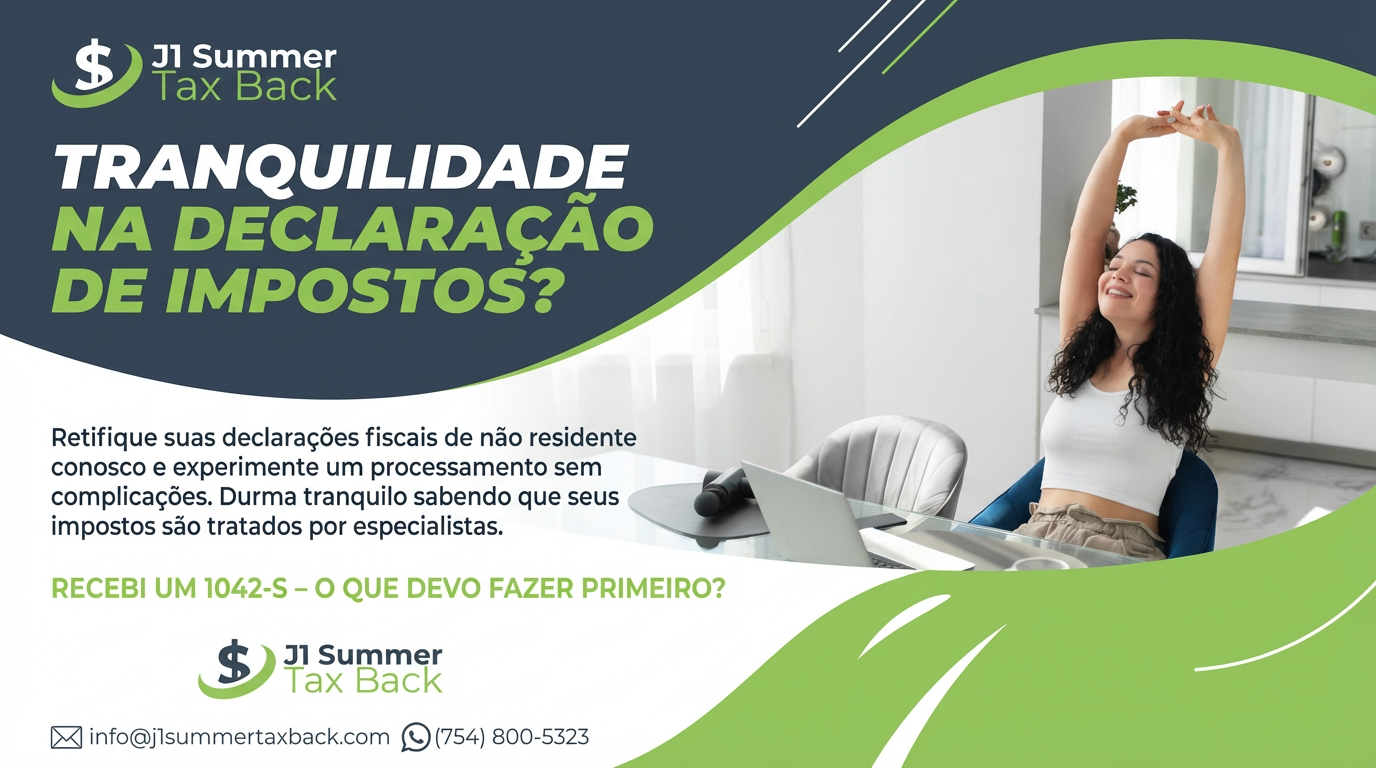 Muitos não residentes cometem erros graves nessa etapa. A J1 Summer Tax Back é especializada em reportar corretamente renda de 1042-S para que reembolsos não sejam atrasados ou negados.