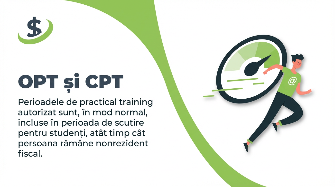 Perioadele de practical training autorizat sunt, în mod normal, incluse în perioada de scutire pentru studenți, atât timp cât persoana rămâne nonrezident fiscal.