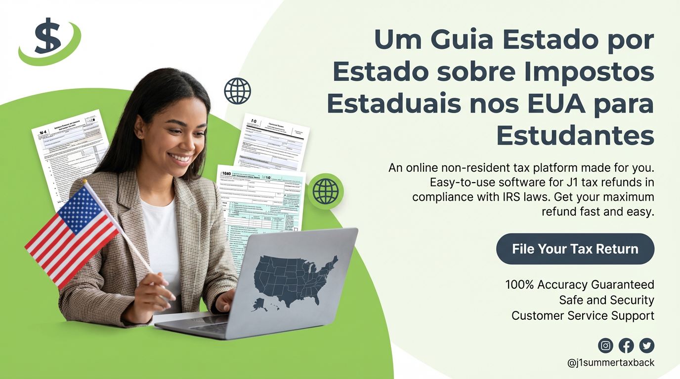 Imagine o seguinte: você termina sua temporada J-1 ou seu trabalho durante o semestre, volta para casa e então recebe um W-2 mostrando imposto estadual retido de um estado onde você mal lembra que morou. É nesse momento que a maioria dos estudantes não residentes percebe que impostos estaduais são completamente separados dos impostos federais — e que as regras mudam dependendo do estado.