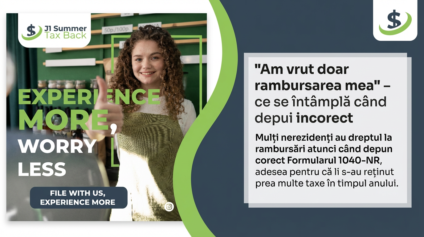 Un aspect important este că, chiar dacă altcineva îți pregătește declarația fiscală, responsabilitatea rămâne de obicei la tine. Numele și informațiile tale sunt pe declarație. La J1 Summer Tax Back vedem frecvent persoane care descoperă greșeala abia după ce primesc o scrisoare de la IRS.